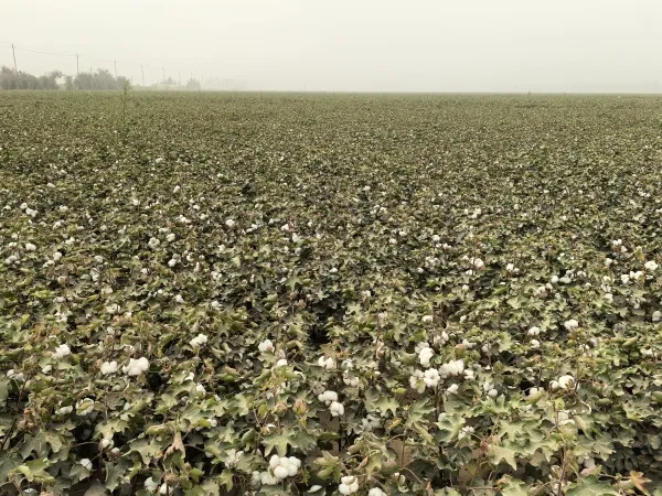 策勒县地处塔克拉玛干沙漠边缘,光照充足、昼夜温差大,干燥少雨的气候既促进棉花吐絮,又抑制病虫害发生,依托这一得天独厚的自然优势,赋能优质棉生产。9月2日,记者在棉田里看到棉农在田地里除草,做好当前的田间管理工作。