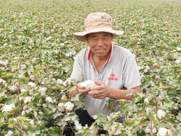 种植户李双乐看着盛开的棉絮,满脸都是丰收的喜悦。