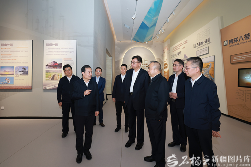 4月7日,自治区党委书记陈小江、自治区主席艾尔肯·吐尼亚孜在新疆地质矿产博物馆,深入了解新疆矿产资源储藏分布和开发利用等情况。石榴云/新疆日报记者 崔志坚摄