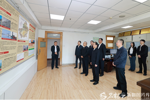 4月7日,自治区党委书记陈小江、自治区主席艾尔肯·吐尼亚孜在自治区自然资源厅,了解地质勘查等重点工作进展。石榴云/新疆日报记者 崔志坚摄