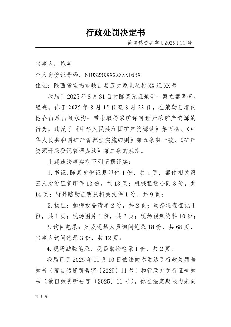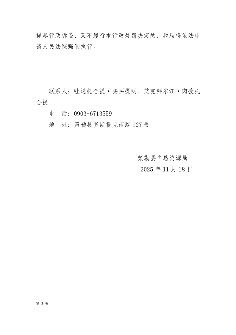 行政处罚决定书 策自然资罚字〔2025〕11号