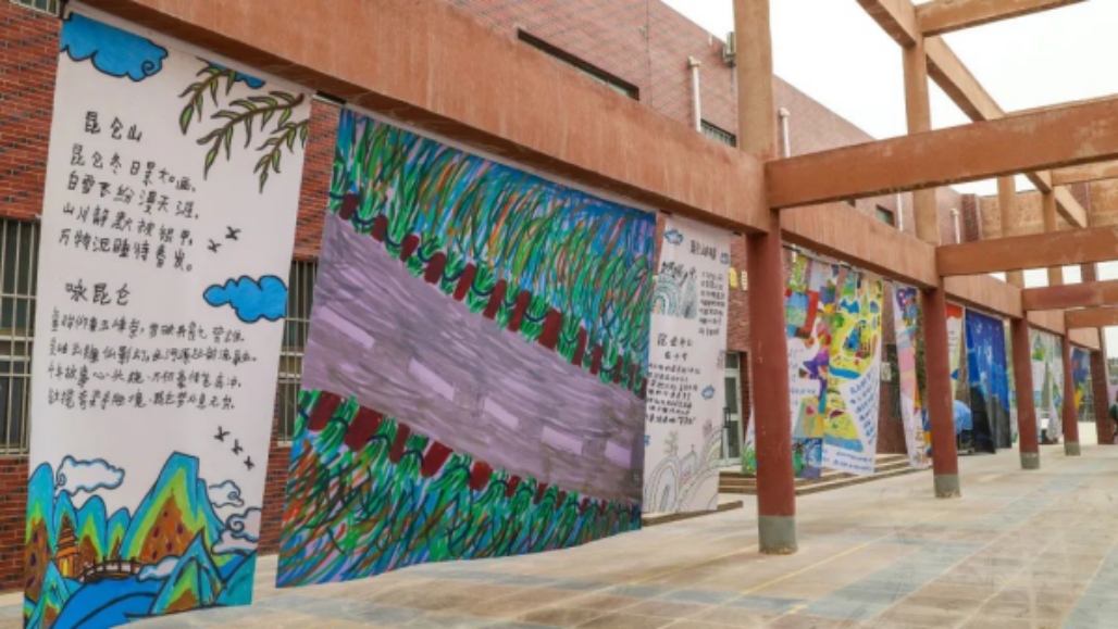 策勒县校园文化艺术节主题展览选用策勒孩子们原创的诗与画,用现代视觉语言重构呈现方式,实现传统文化符号与当代审美表达的有机融合。这也是策勒美育工作站自2025年3月揭牌以来举办的首次大型活动,是策勒县当地美育事业新发展模式的一次大胆尝试。