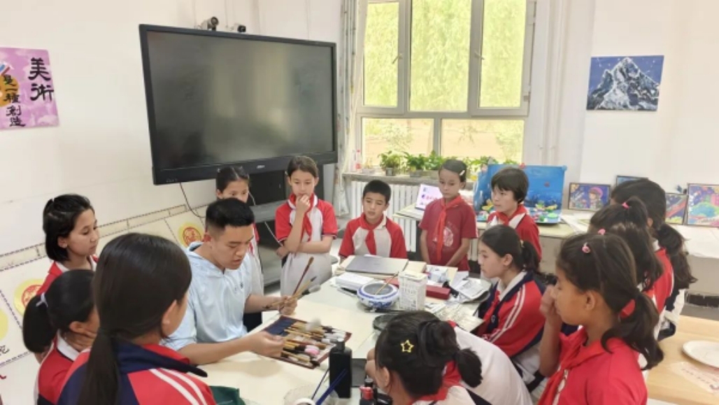 参展学校之一策勒第三小学党支部书记张强东表示:“支教团的老师们以专业眼光重新发现儿童创作的独特价值,通过艺术转换让童趣焕发人文光彩;他们以专业视角让这些饱含温度的作品得以生动呈现,这样的美育实践真正让艺术走进了孩子们的心灵。”