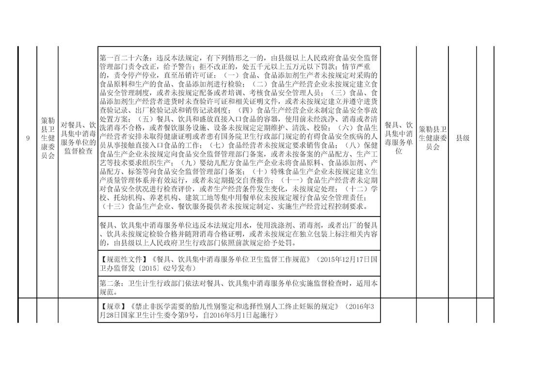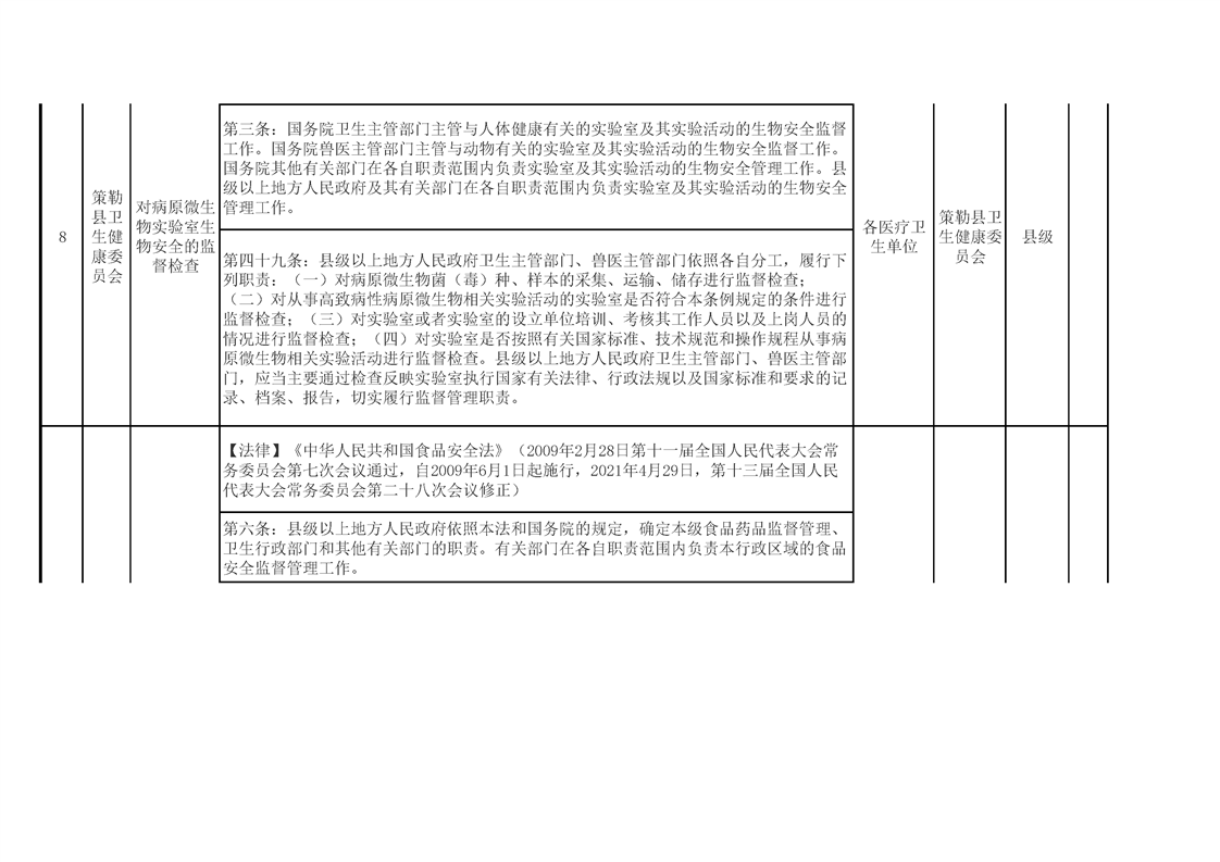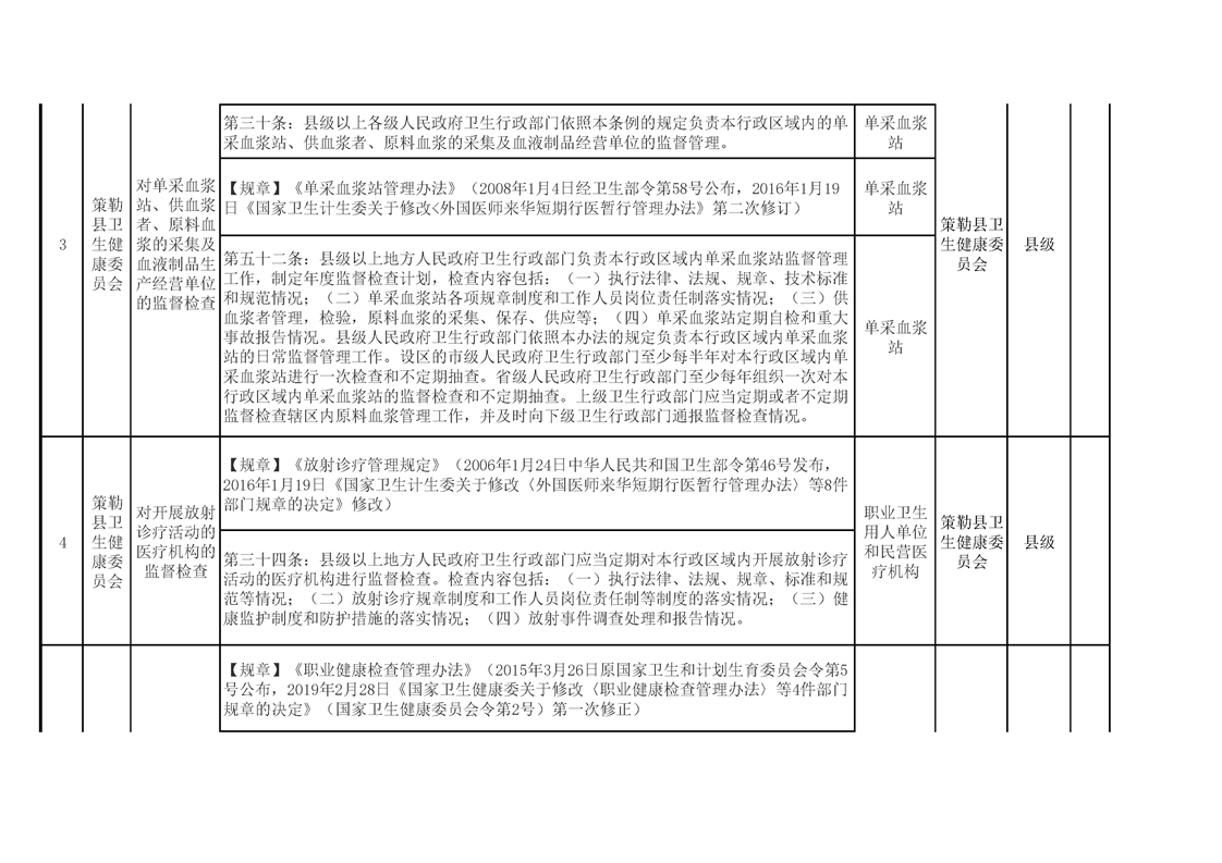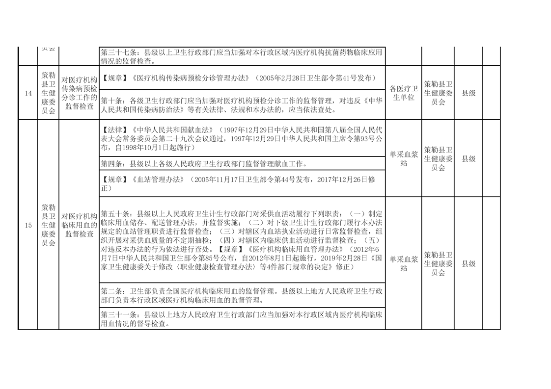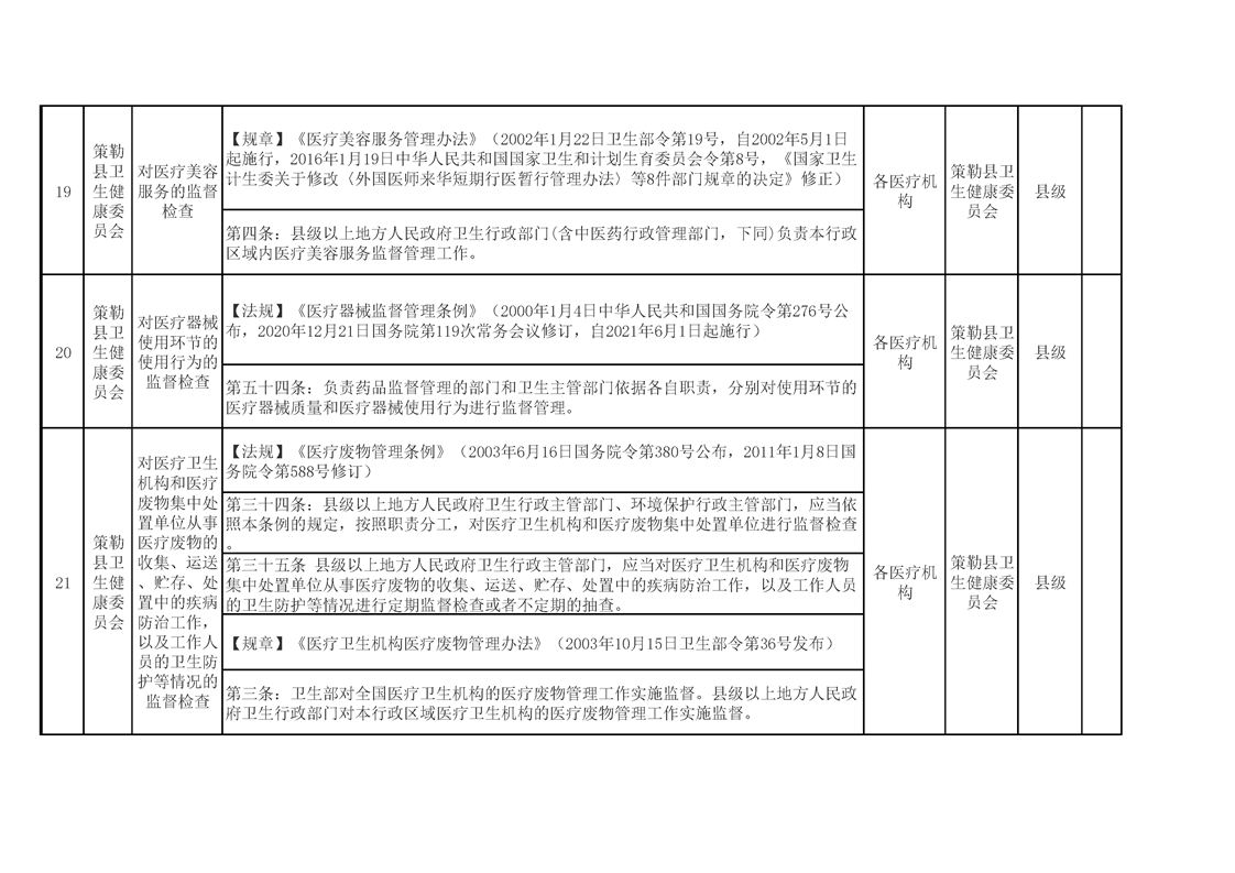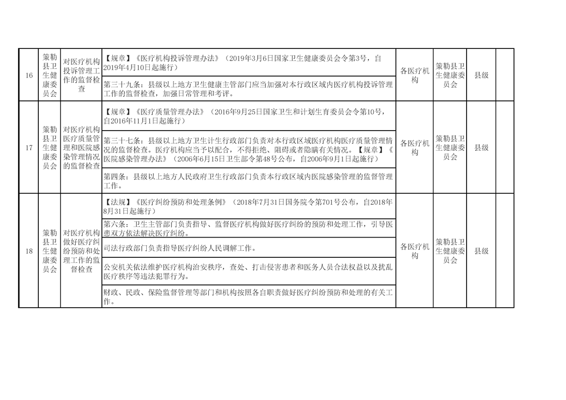 策勒县卫生健康委员会涉企行政检查事项清单